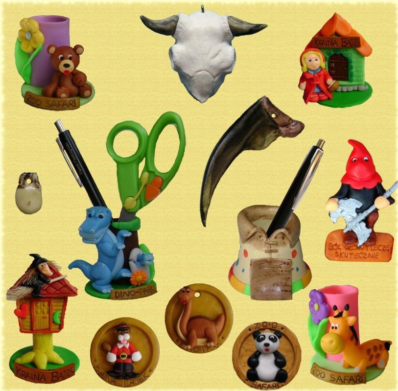 Nasza przygoda z modeliną zaczęła się w 1995 roku. Od tej pory ciągle uczymy się i rozwijamy nasze umiejętności. Wszystkie wyroby są wykonane ręcznie z zastosowaniem przeróżnych narzędzi, począwszy od zwykłych igieł czy gwoździ, a skończywszy na skomplikowanych wykrojnikach.